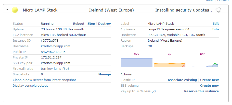 But otherwise I would destroy it and try again... I just launched a Micro LAMP instance in Ireland and it all worked fine straight away for me...