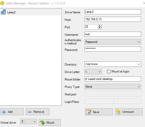 In the screenshot below - it works (ie mounted I: drive to/var/www) but - mount folder seems not to do anything. (Not sure what/if it was meant to do) leaving it blank seems not to change anything.