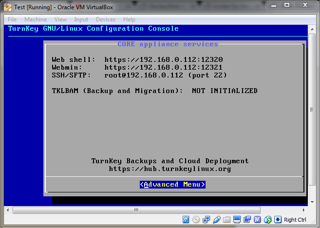 After that the first boot will be complete and you'll reach the Configuration Console's Usage screen. You can now log into your newly installed TurnKey appliance through your web browser by entering one of the IP addresses listed at this screen.