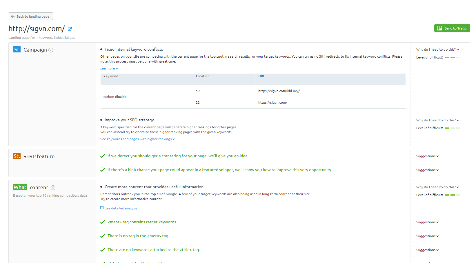 I want to put the Website with the link: https://sigvn.com to the top with the keyword "Industrial Gas". But another link in my Website competes for that keyword: https://sigvn.com/khi-oxy/. Although the two contents are completely different. I don't want 301 redirect. Is there any other method?. Thanks!