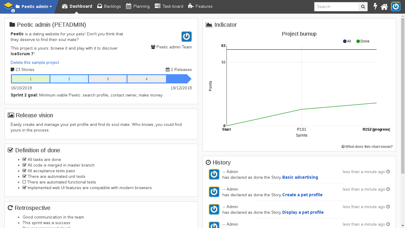 iceScrum is a web application for using Scrum, the most popular agile development method, while keeping the spirit of a collaborative workspace. It also offers virtual boards with post-its for sprint backlog, product backlog and others.