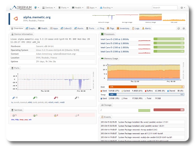 Observium is an autodiscovering SNMP based network monitoring platform written in PHP which includes support for a wide range of network hardware and operating systems including Cisco, Windows, Linux, HP, Dell, FreeBSD, Juniper, Brocade, Netscaler, NetApp and many more.