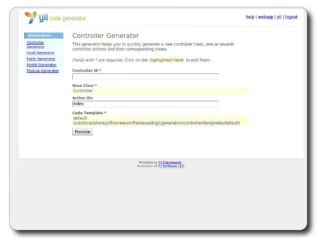 Yii Framework - Controller Generator